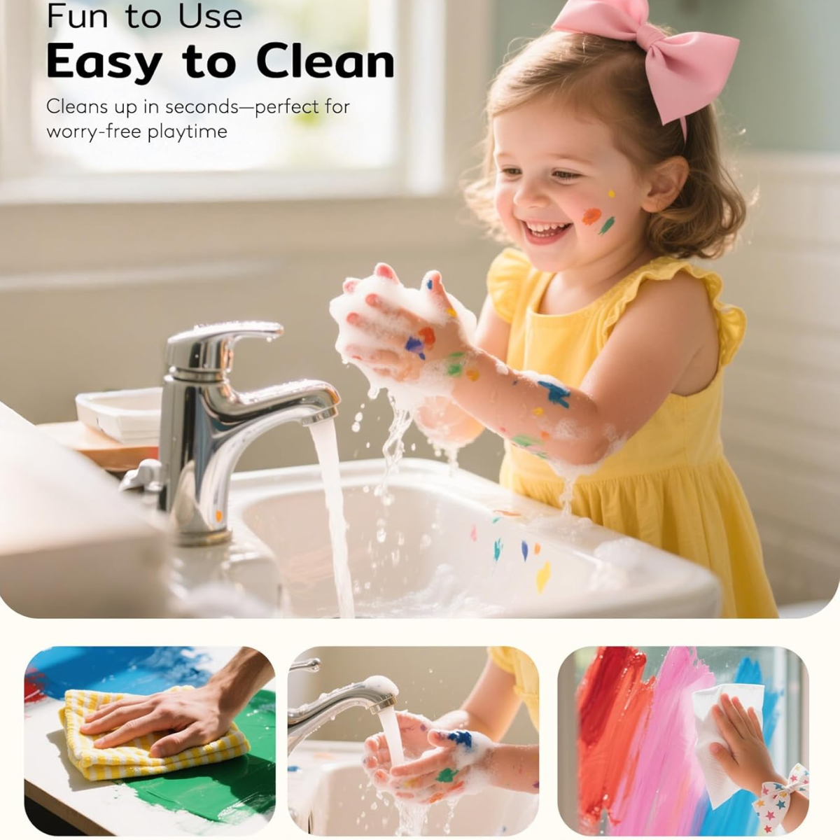 🧽 Καθάρισμα χωρίς κόπο – Ξεπλένονται εύκολα από χέρια, τραπέζια, ρούχα και τοίχους.
