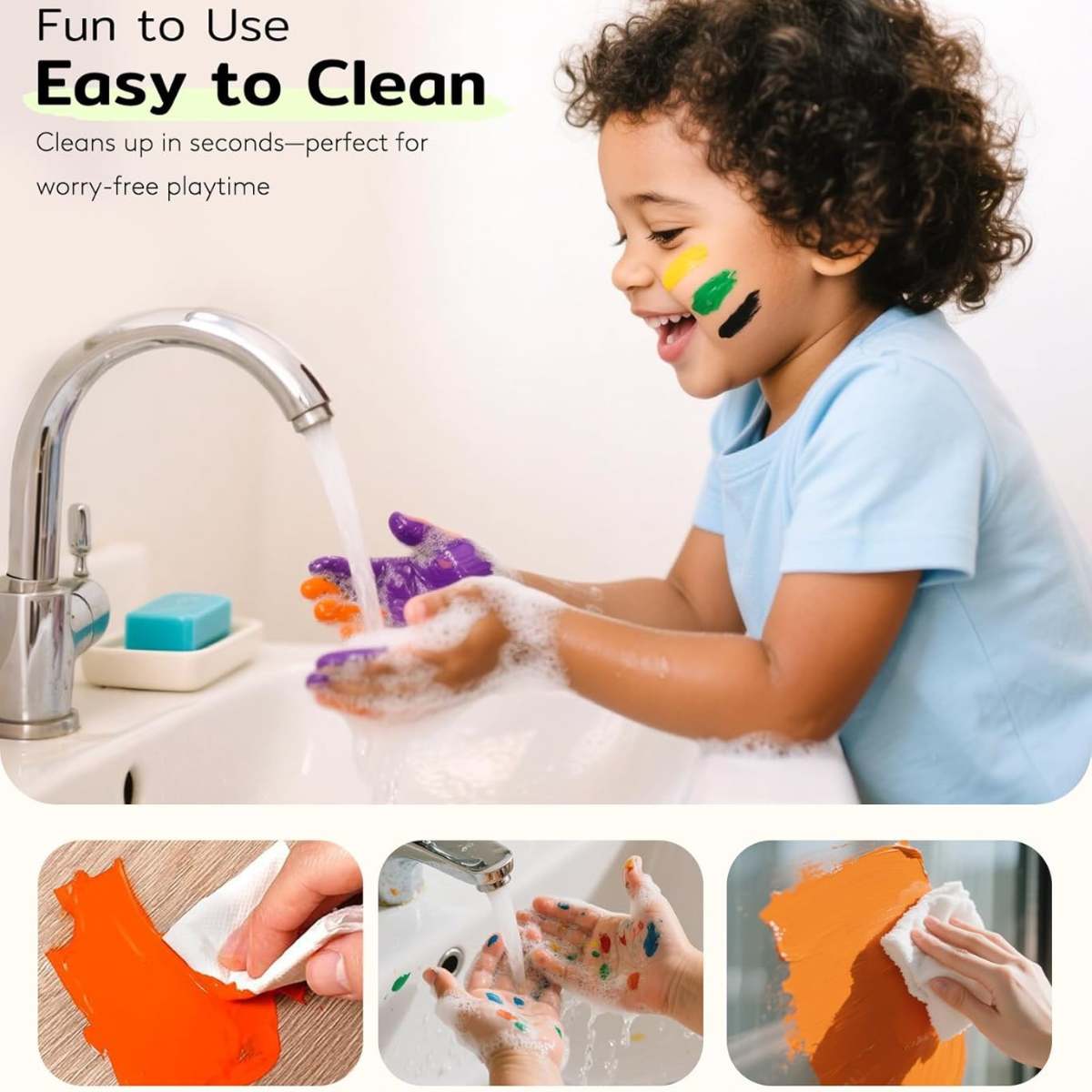 ✅ Ασφαλές αισθητηριακό παιχνίδι – Η επαφή με τα χρώματα μέσω των δαχτύλων ενεργοποιεί τις αισθήσεις και βοηθάει στην πρώιμη ανάπτυξη του εγκεφάλου.