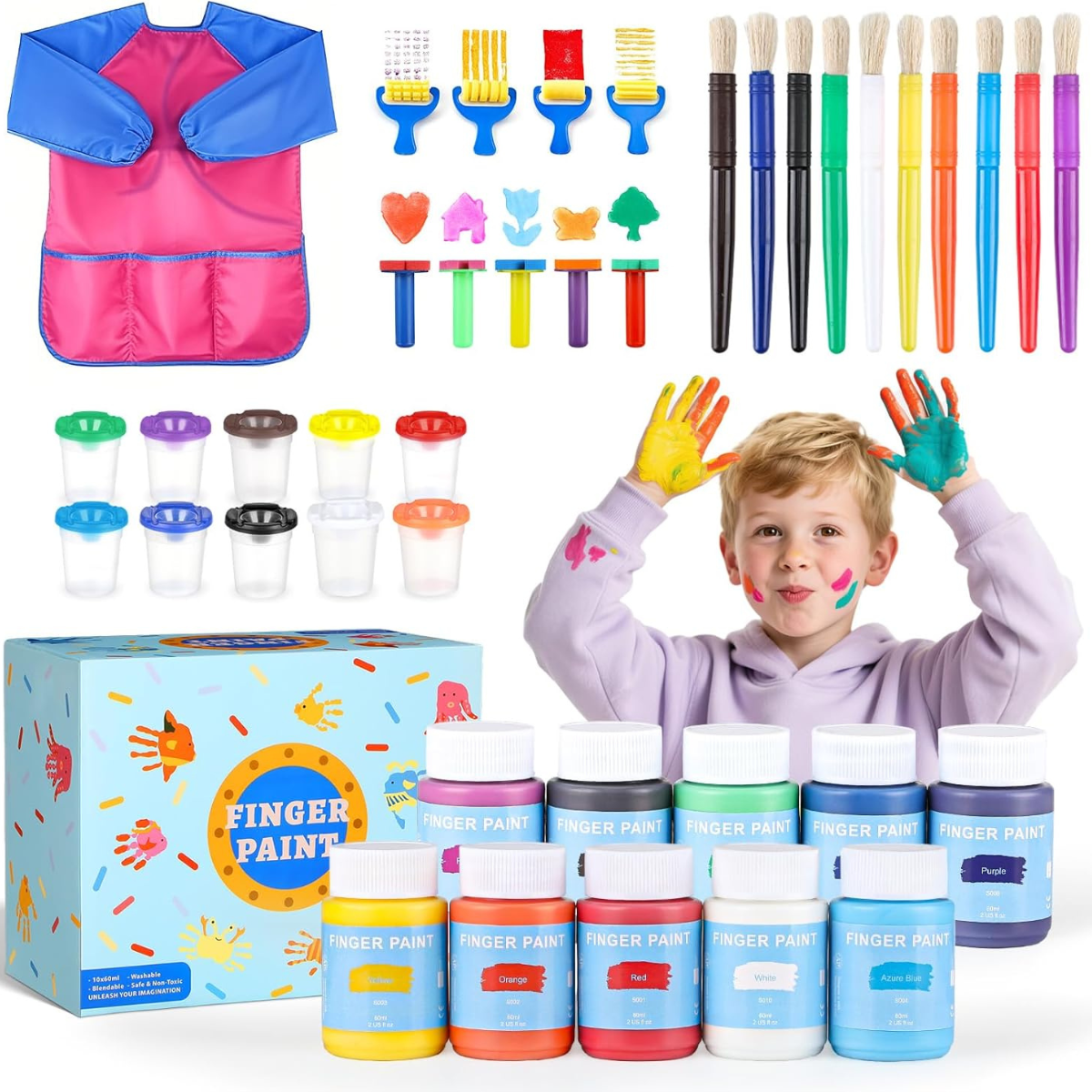 Finger Paint – Πλενόμενο Σετ Δακτυλομπογιών για Παιδιά (10 Μη Τοξικά Χρώματα, 3+ Ετών)