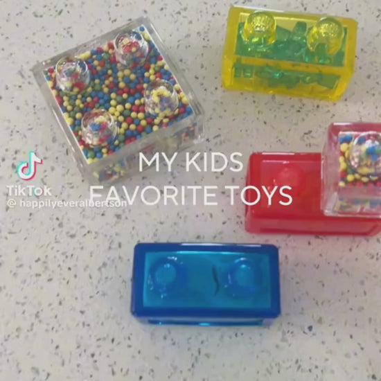🎨 Έκπληξη στο εσωτερικό – Κάποια τουβλάκια περιέχουν υλικά όπως μαγική άμμος, αφρώδεις μπίλιες, αστεράκια ή μικρά τουβλάκια.
