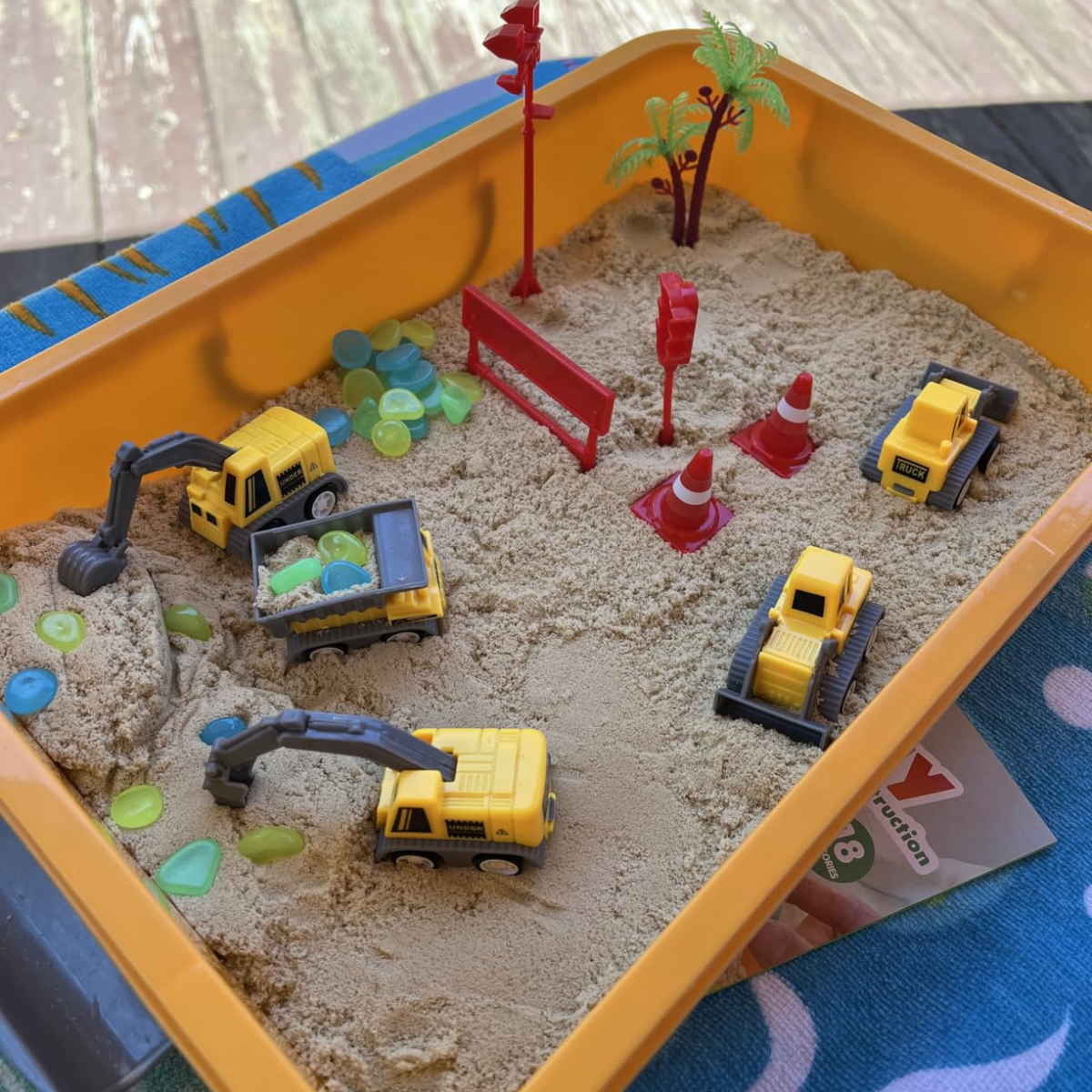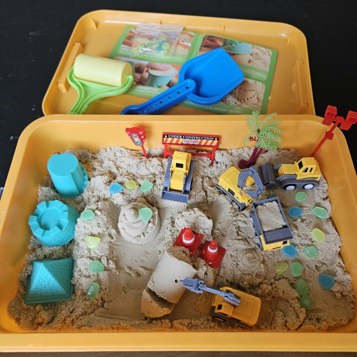 Γνωρίζατε ότι έως και το 90% του εγκεφάλου ενός παιδιού αναπτύσσεται μέχρι την ηλικία των 5 ετών; 🧠 Το Klever Kits Construction Sensory Bin προσφέρει στο παιδί σας πολύτιμη απτική και αισθητηριακή εμπειρία μέσα από το παιχνίδι! Περιλαμβάνει άμμο που δεν λερώνει, φωτιζόμενα πετραδάκια, εργαλεία, φορτηγάκια και καλούπια για κάστρα — ιδανικό για την ενίσχυση της δημιουργικότητας, της συγκέντρωσης και των λεπτών κινητικών δεξιοτήτων.