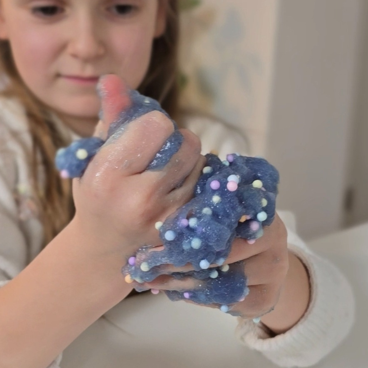 Δημιουργικό σετ SLIME, όπου τα παιδιά ανακατεύουν και δημιουργούν το δικό τους γαλαξιακό slime – χωρίς ακαταστασία και χωρίς άγχος.