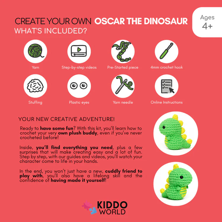 Σετ για πλέξιμο για αρχάριους | Δεινόσαυρος Όσκαρ | Κατάλληλο για 10+
