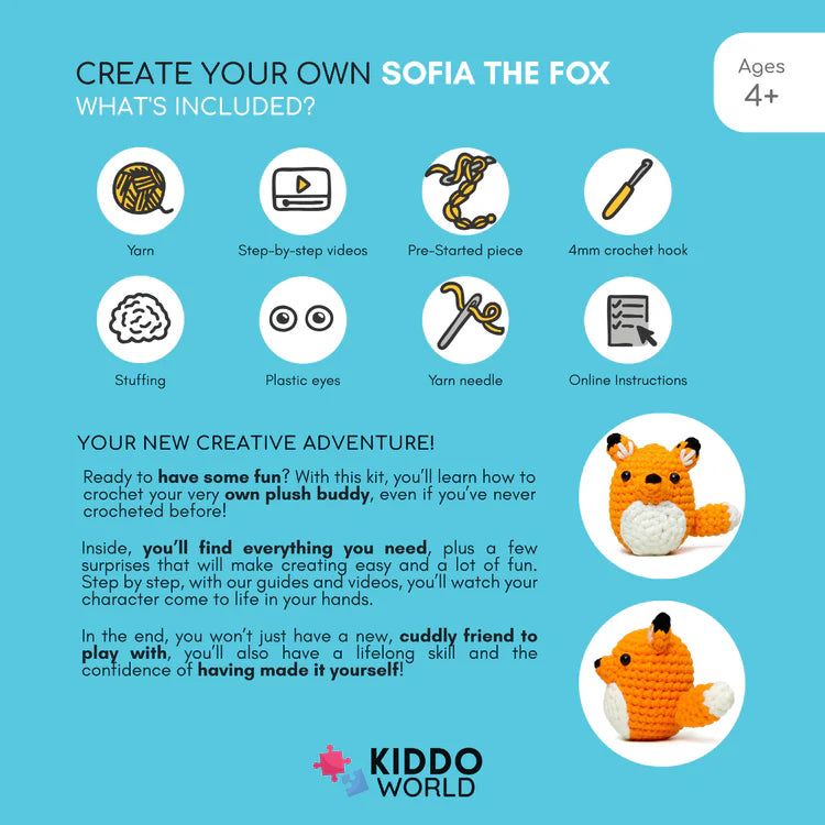 Σετ πλεξίματος για αρχάριους | Αλεπού Σοφία | Κατάλληλο για ηλικίες 10+