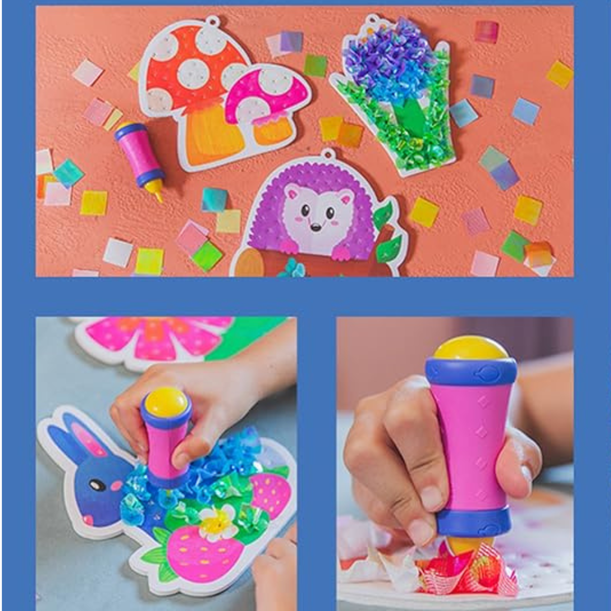 Με το Educational Insights Tufting Kit, το παιδί σας αποκτά ένα εργαλείο για ασφαλή και εύκολη τοποθέτηση 800 πολύχρωμων υφασμάτινων κομματιών σε 12 μοναδικά σχέδια με φυσικά μοτίβα.