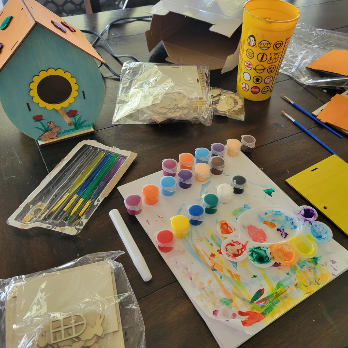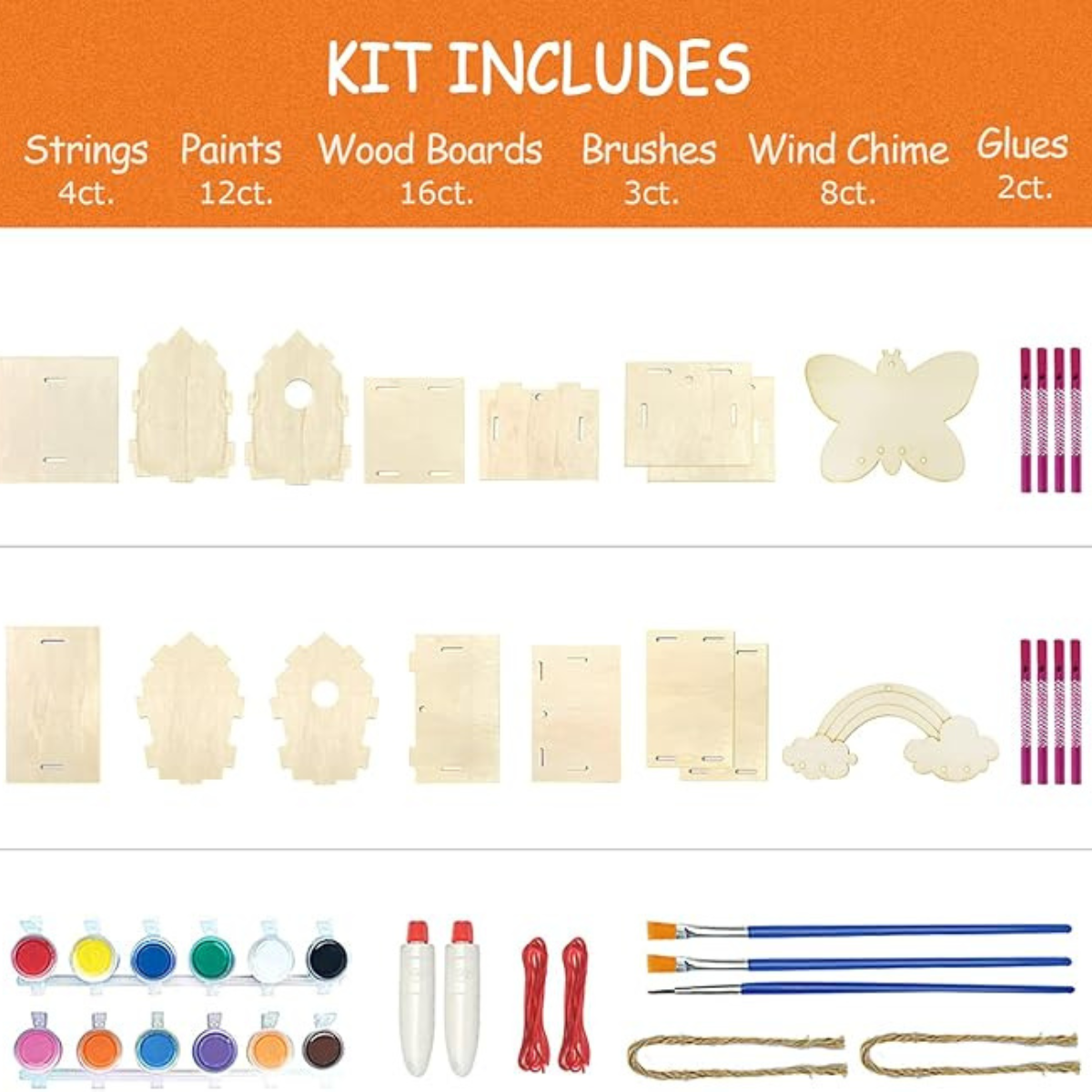 🎁 Όλα περιλαμβάνονται – 2 σπιτάκια, 12 χρώματα, 3 πινέλα, 2 κορδόνια, 2 κόλλες